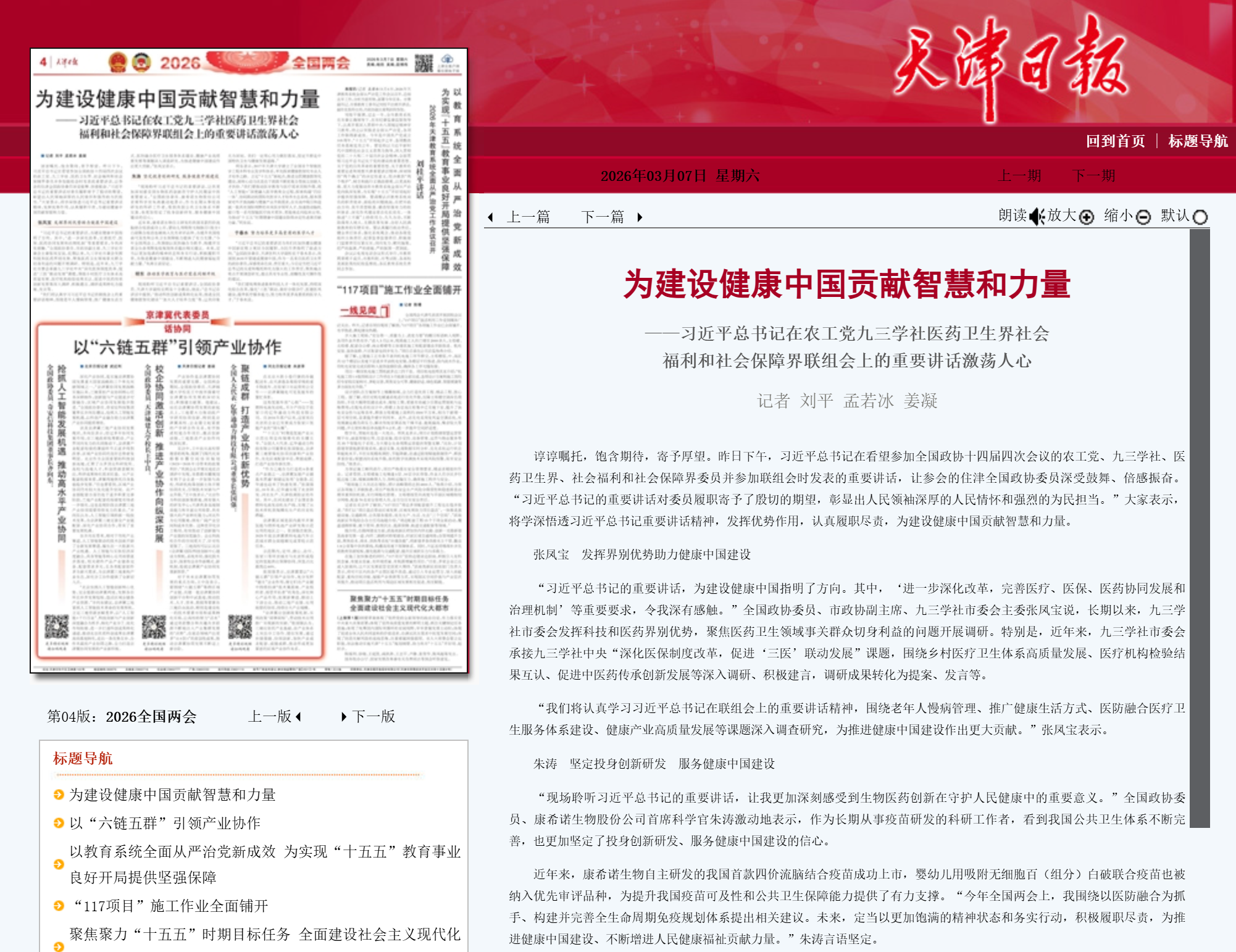 在今年全国两会期间,全国政协委员、bbin宝盈集团生物首席科学官朱涛认真履行委员职责,围绕会议核心议题持续建言献策,以专业视角传递行业声音、凝聚开展共识。时值“十五五”开局之年,他立足生物医药产业与公共卫生实践,聚焦构建并完善全生命周期免疫规划体系,不断深化医防融合接种服务模式,有助于免疫规划从“婴幼儿重点覆盖”向“全人群动态保障”转型,为筑牢全民健康防线、助力健康中国建设与生物医药高质量开展贡献了专业智慧。相关建议与观点取得多家媒体广泛报道。